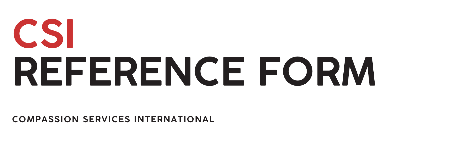 A minimum of three references must accompany a CSi Responder application. Thank you for taking the time to complete this evaluation and helping us determine this applicant's suitability for this assignment. Please note the information given will be kept in the strictest confidence (We expect Pastor's and other professionals to fill these out).